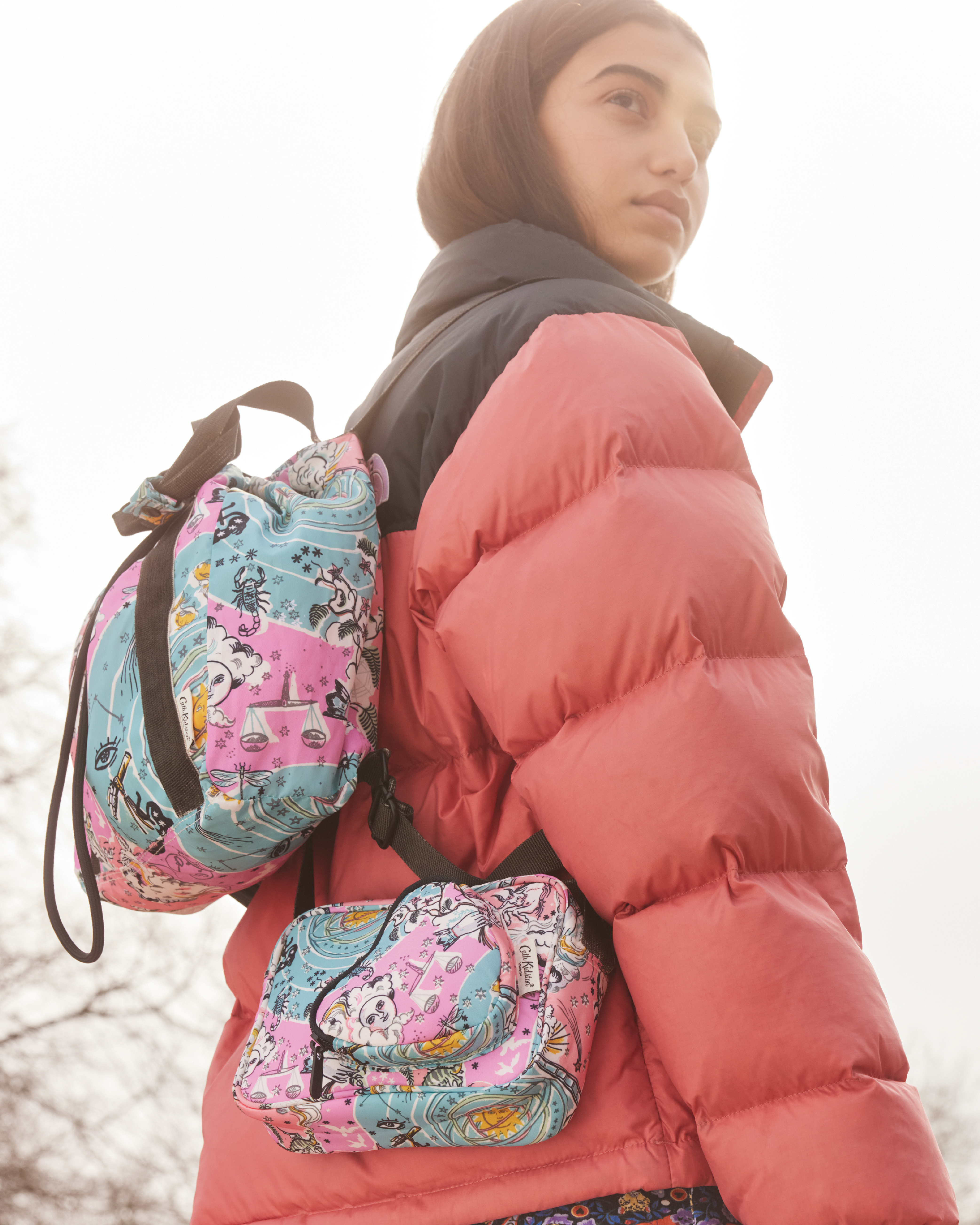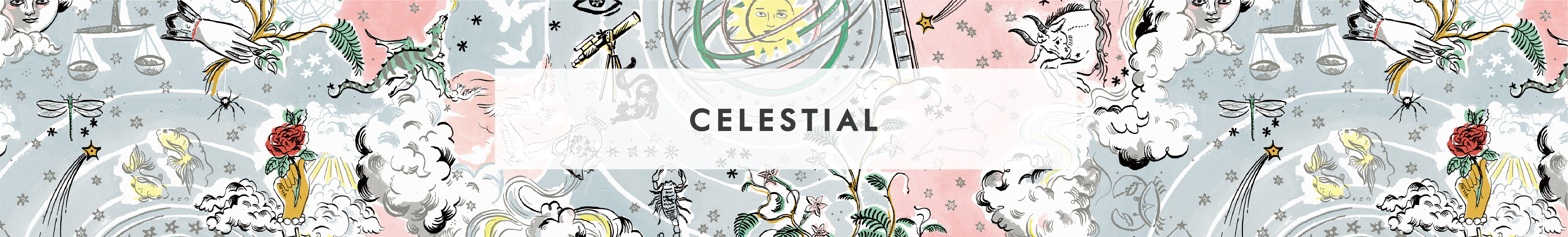 如同英國20年代那些成天聚集在時尚沙龍的精英份子們,他們總是沉浸於探索世界的真實與想像,並堅信萬物皆有可能的道理,因此這款印花以宇宙奧秘為設計重點,整體充斥著雲朵與流星,更添加玫瑰與慵懶的貓咪,創造出如夢境般的獨特世界。