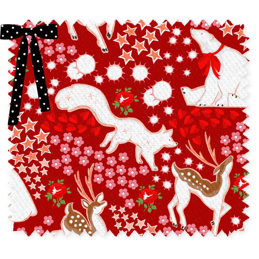 一起感受北極的奇幻魅力,迷人的印花以俏皮的細緻花樣呈現可愛的北極風景。北極熊繫上紅色蝴蝶結與雪白的北極狐和馴鹿一同漫步於飄雪之中,營造出浪漫又夢幻的冬日氛圍。