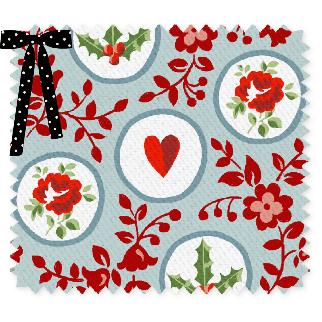 以充滿節慶感的印花為主題,將愛心、玫瑰與冬青葉巧妙融合於繽紛的圓點設計中,展現出俏皮又細膩的節日氛圍。